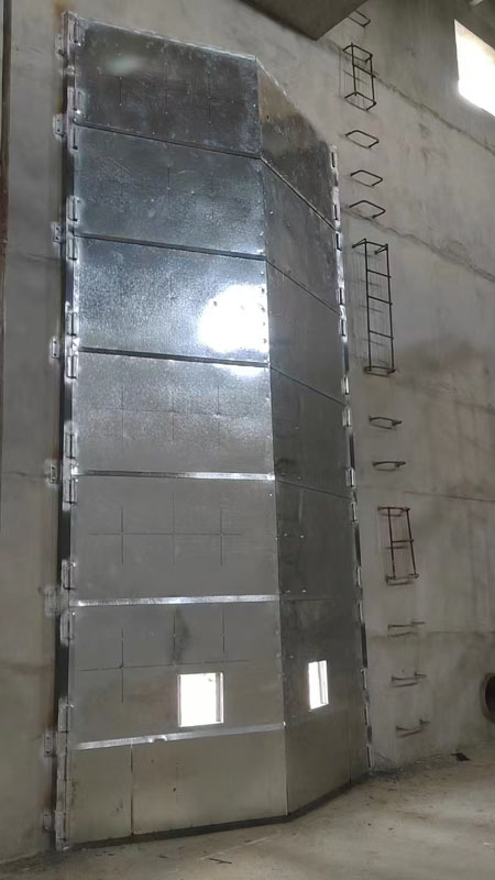 适用于高大平房仓、浅圆仓等仓型,尤其适合高粮层(如28米浅圆仓)的侧压防护。 挡粮门的应用范围主要覆盖以下场景,挡粮门其设计需适配不同仓型及储粮需求: 一、挡粮门适用仓型 高大平房仓:承受8.5米装粮线高度下粮食(如小麦)的侧压力,采用多节对开式挡粮门形成三角形/弧形受力结构。